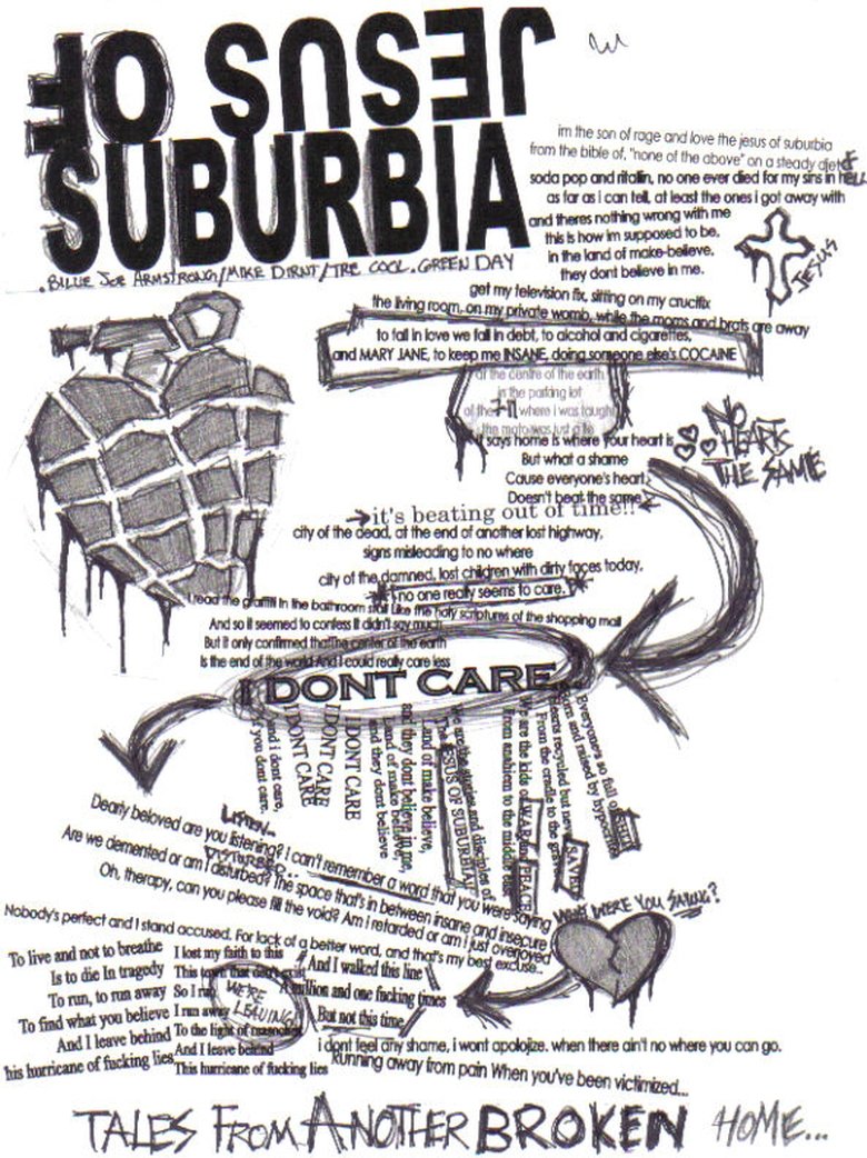 Green Day's music video for the second track of their 2004 album 'American Idiot', which follows the story of Jesus of Suburbia, an antihero created by Billie Joe Armstrong. Jesus of Suburbia represents the average lower middle-class suburban American teen. He hates his town and those living in it, so decides to leave his home in the suburbs and go to the city to finally set free of the well-established structures of the conservative American society that surrounds him.